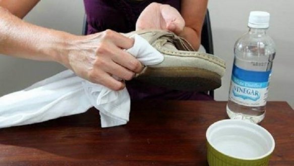 Чтобы отчистить темную замшевую обувь в домашних условиях используйте старый добрый уксус: