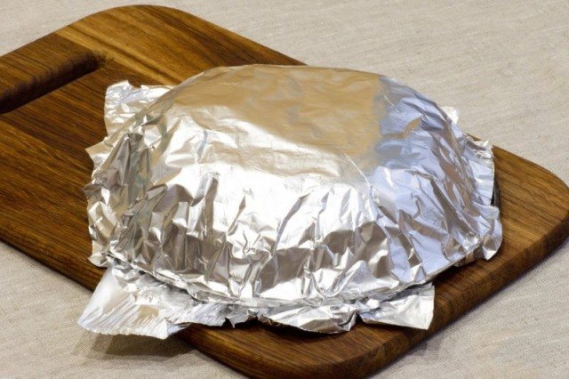 Это может быть фольга, либо вместо нее можно накрыть пирог пергаментной бумагой.