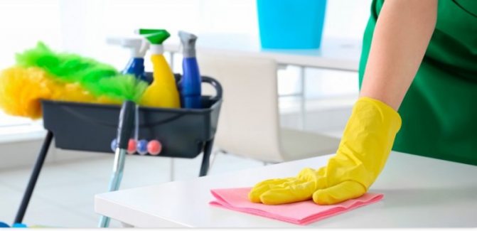 - Остатки чистящего средства смывают чистой влажной губкой.
