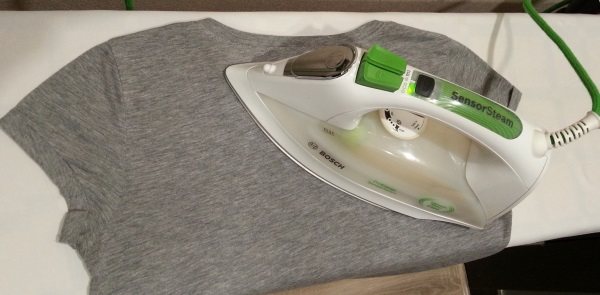 - Одежду, на которую нужно наклеить аппликацию, следует разместить на гладильной доске.