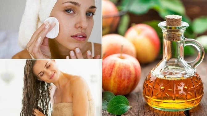 С помощью средств с добавлением уксуса удается справиться с воспалением кожи и прыщами на лице. Для этого нужно хотя бы 1 раз в неделю делать маску из 1 столовой ложки овсяной муки, такого же количества меда и яблочного раствора. Все компоненты следует перемешать и нанести на лицо на полчаса. Кроме этого, рекомендуется ополаскивать волосы после мытья, раствором уксуса, что придаст им блеск.