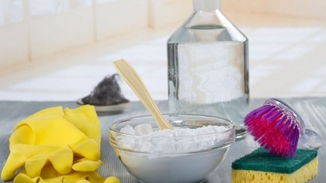 Чтобы отмыть сковородку, необходимо налить внутрь посуды уксус, смешанный с водой в пропорции 1:1. Смесь кипятят на протяжении и 4-5 минут, после чего промыть емкость под проточной водой.