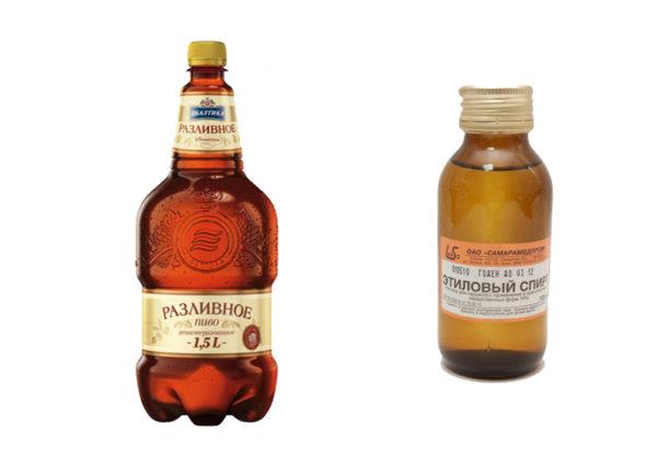 - Разбавить спирт холодной водой в пропорции 1:2 – это стандартная пропорция. Для лучшего эффекта можно развести спирт с водой пополам.