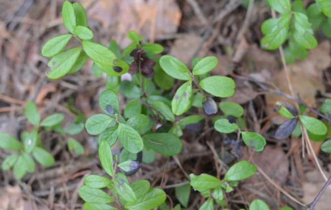 - Прямым противопоказанием для использования в качестве материала под засушку являются листья брусники, растущей: