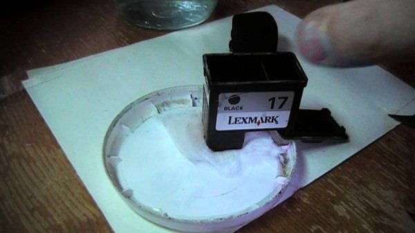 В емкости с горячей водой следует разбавить моющее средство и погрузить в полученный раствор так, чтобы он ушел под воду. Далее его следует оставить размачиваться в горячем растворе, пока вода не станет комнатной температуры примерно на 30-40 минут. Этот способ сможет оживить даже самую засохшую краску и даже когда принтер очень давно не эксплуатировался.
