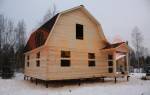 Есть вторая технология «баллун». По ней каркас монтируется постепенно: на обвязку или даже сразу на блоки монтируются угловые стойки каркаса. Они выставляются в уровень во всех плоскостях. Между ними натягивают канат, по которому затем выставляют остальные стойки. Их также прибивают по одной, скрепляя между собой укосами и временными поперечинами.